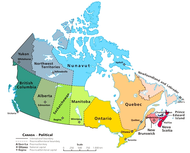 بعد از اون تقريبا ٢٠٠ سال پيش قانون مشروطه كانادا شكل ميگيره و اين كشور رو به دو ايالت كلي تقسيم ميكنه:
