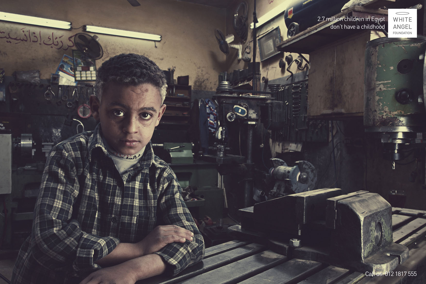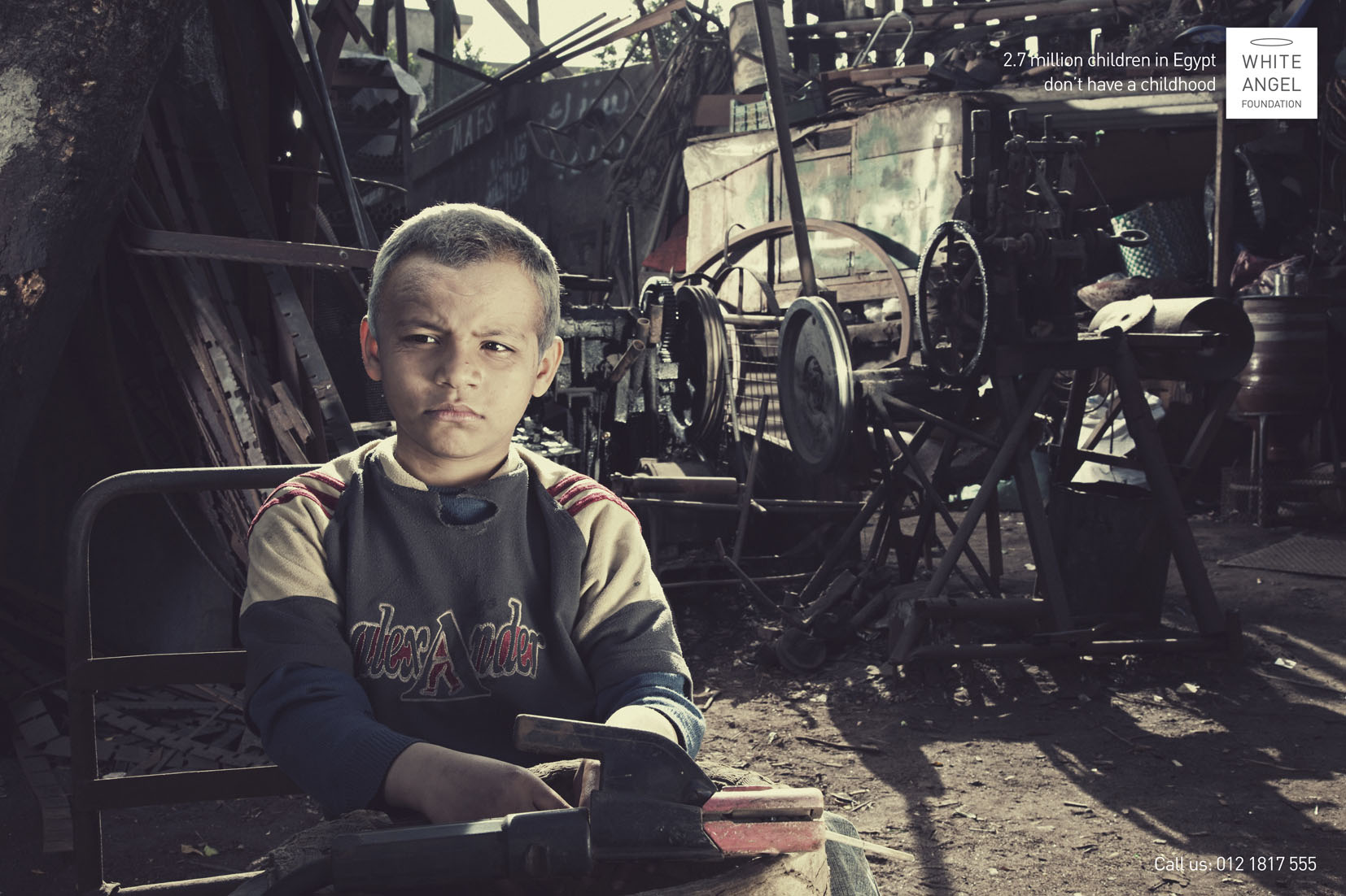 بنیاد white angle در سری جدید اگهی های خود تصاویر از کودکان را با ترکیب بندی بزرگسال نشان می دهد کودکانی که بدنی کودکانه و چهره ای بزرگسال دارند. این بنیاد با شعار “۲ میلیون هفتصد کودک در مصر کودکی نمی کنند” جامعه جهانی را مساله کودکان کار جلب می کند.