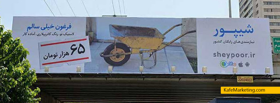 شپیور در تبلیغات محیطی چه کرده است؟ در حالی که عموم کارفرماها دوست دارند تا محصولشان به زیباترین شکل ممکن به نمایش در آید این برند با استفاده از تصاویر محصولاتی که در سایتش قابل خرید و فروش است هر بیلبورد را محلی برای فروش محصول کرد و نکته جالب اینکه بعد از چهار روز زیر تابلو استیکر بزرگی چسبیده می شود که نشان دهنده به فروش رفتن محصول است و در نتیجه بعد از دو یا سه روز دوباره یک محصول جدید دیگر رونمایی می شود. یعنی هر ۱۰ روز یک طرح و یک استیکر. همه البته در قالب تبلیغات نه اینکه واقعا فروشی اتفاق بیفتد. این اتفاق به قدری برای مخاطب عجیب بود که بازخوردهای خوبی در فضای مجازی داشت و هرکس که من دیدم در نگاه اول غیر از حیرت چیزی در ذهن نداشت. واقعا هم جای حیرت داشت. اینکه شما ببینید روی یک تابلوی بزرگ تصویر فرغونی دست دوم است که برای فروش گذاشته شده و بعد از چند رو به فروش هم رفته است. در پس این اتفاق مخاطب کاملا شفاف می فهمد که با چه سایتی سروکار دارد.