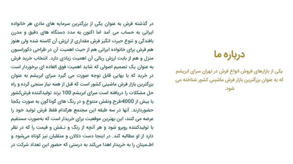 سفارش طراحی فونت در برندینگ هر تجارتی، نشان میدهد مدیران آن تجارت به اهمیت و ظرافتهای کسب و کار خود واقف هستند. ظرافتی که در سرای ابریشم به خوبی قابل درک است.