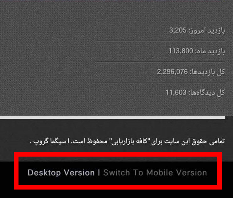 جسارتاً من همچنان از نسخه موبایل برای دیدن کامل سایت مشکل دارم و پایین سایت مطابق عکس گزینه ای وجود نداره