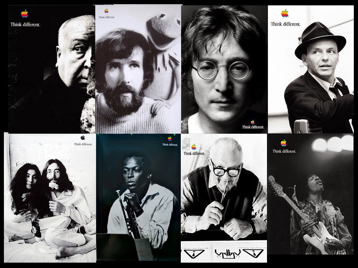 راب این احساس را داشت که تمام کسانی که در این تبلیغ نمایش داده شده اند، در راه رسیدن به موفقیت با چالش های زیادی روبرو شده اند و همه آن ها به خطرهایی مشابه آنچه اپل در حال تجربه آن است، مواجه شده بودند. همه آن ها در مقاطعی از زندگیشان نادیده و یا حتی مورد تمسخر اطرفیان خود قرار گرفته بودند. اپل در سال ۱۹۹۷ با القابی همچون « اسباب بازی » هایی که در دنیای واقعی کارایی ندارند، مورد تمسخر قرار می گرفت، اما راب مطمئن بود می تواند نظر مردم را نسبت به اپل عوض کند و این پیام را به مردم انتقال دهد که متفاوت بودن می تواند به معنی خوب بودن باشد.