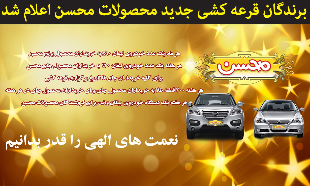 حال جالب است بدانید یکی از همسایگان دوستانم در زمان اوایل قرعه کشی های محسن رفته بود و یک وانت چای محسن خرید کرده بود و همه ی کارت قرعه کشی ها را ارسال کرده بود ولی چیزی برنده نشد!