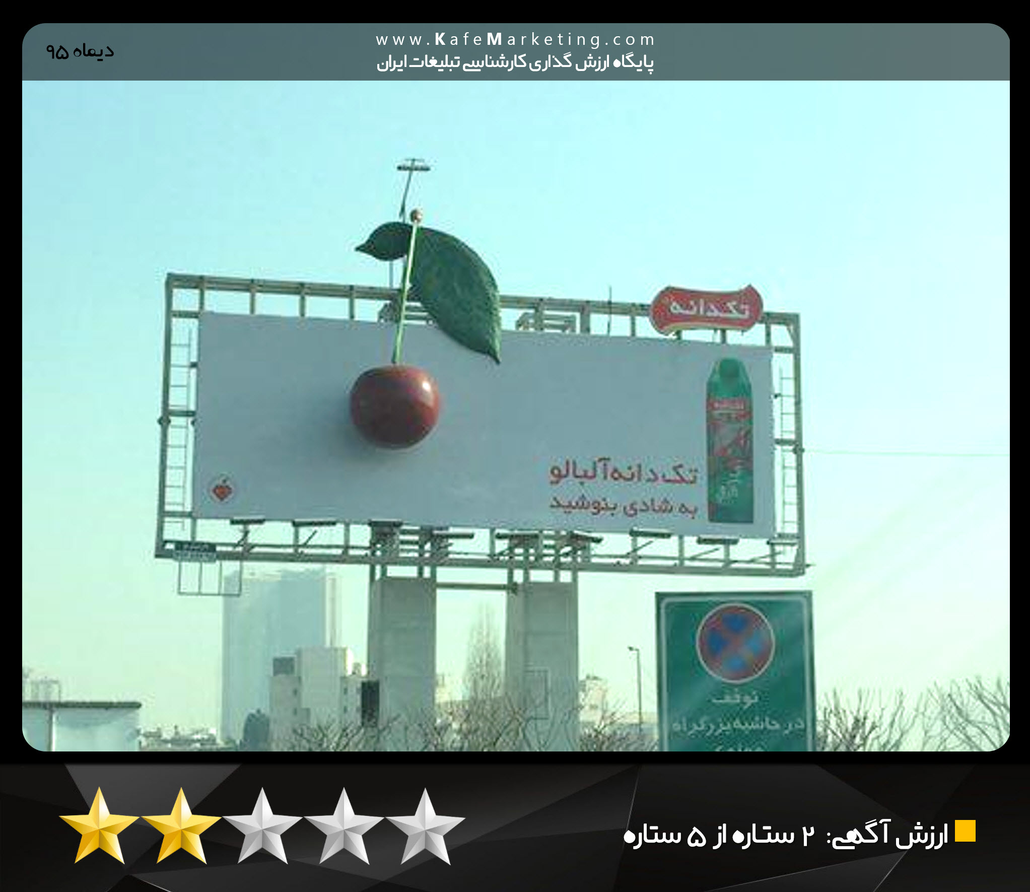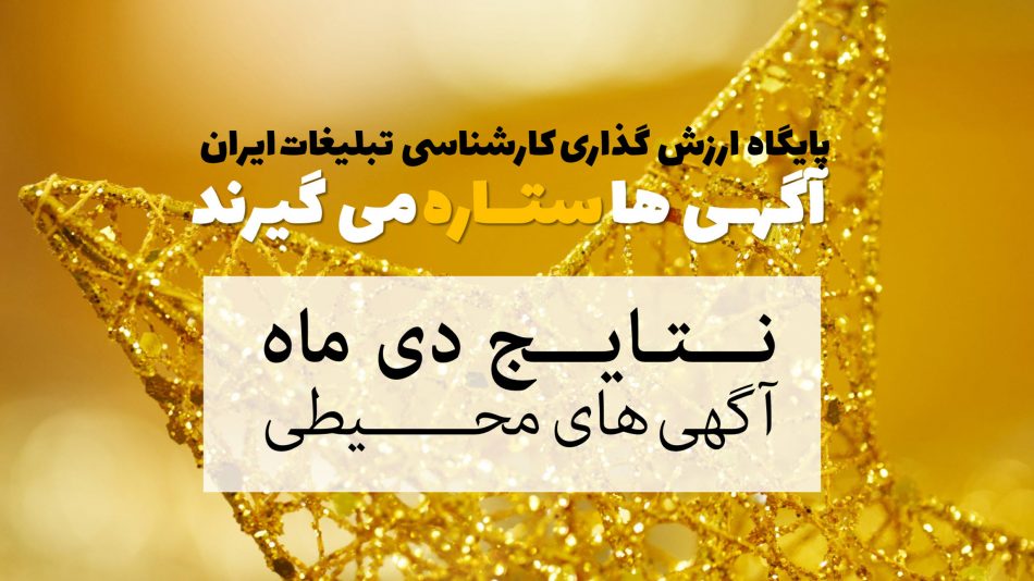 همراهان کافه بازاریابی، همان طور که در کانال تلگرام کافه بازاریابی شاهد بودید از ماه تابستان امسال رتبه بندی و ارزش گذاری آگهی های ایران “در فاز اول آگهی های محیطی” شروع شد و انعکاس خوبی هم نزد اهالی فن و متخصصان داشت. پیامهای متعدد شما بعد از شروع این حرکت ما را بر آن داشت تا از نحوه ارزش گذاری گزارشی ارایه دهیم که پیش از این در سایت خواندید (اینجا) با پایان دی ماه می توانید نتیجه ارزش گذاری ویژه دی ماه را یکجا ببینید. برای دیدن لحظه به لحظه ارزیابی ها نیز با کانال ما همراه باشید.
