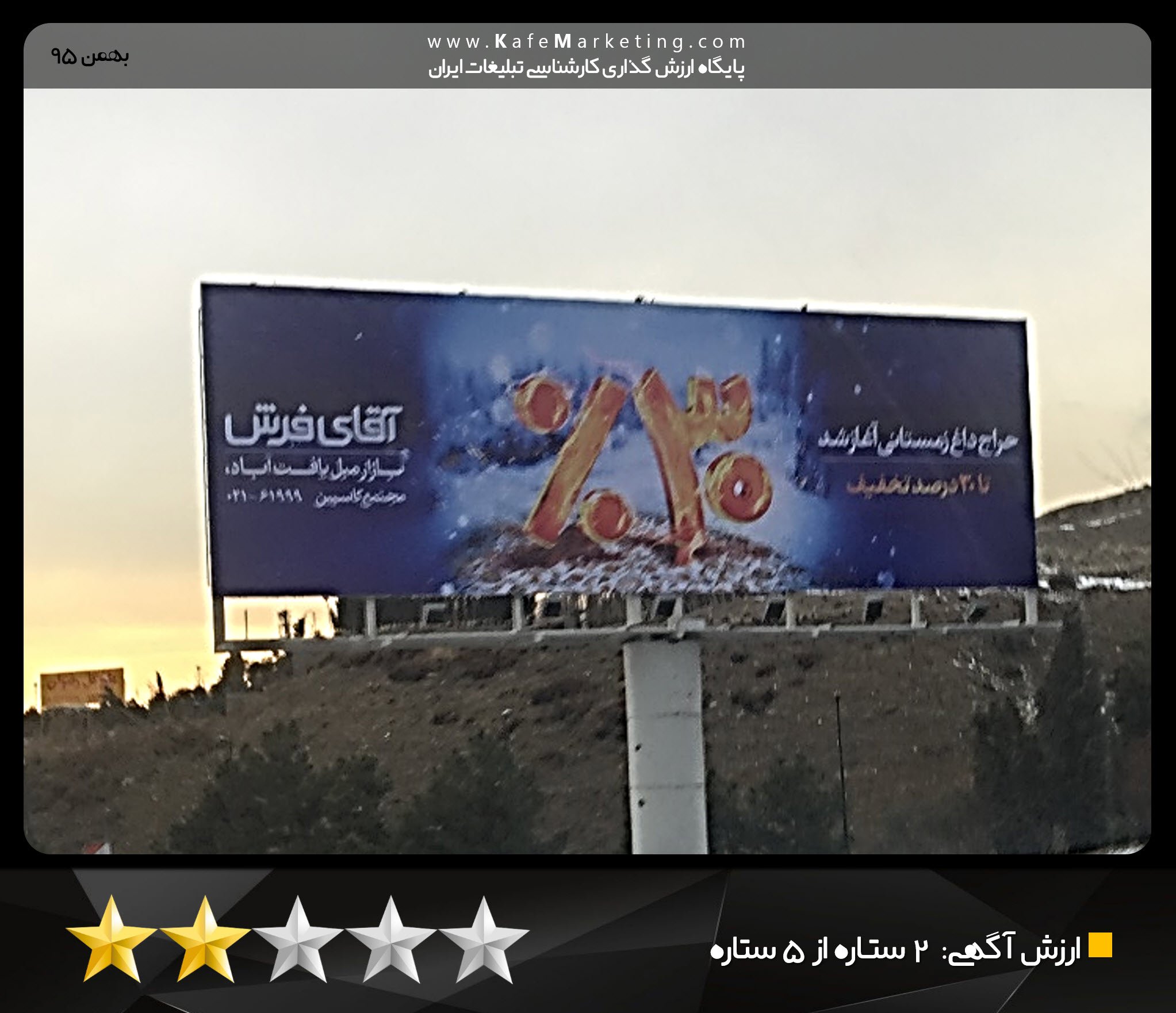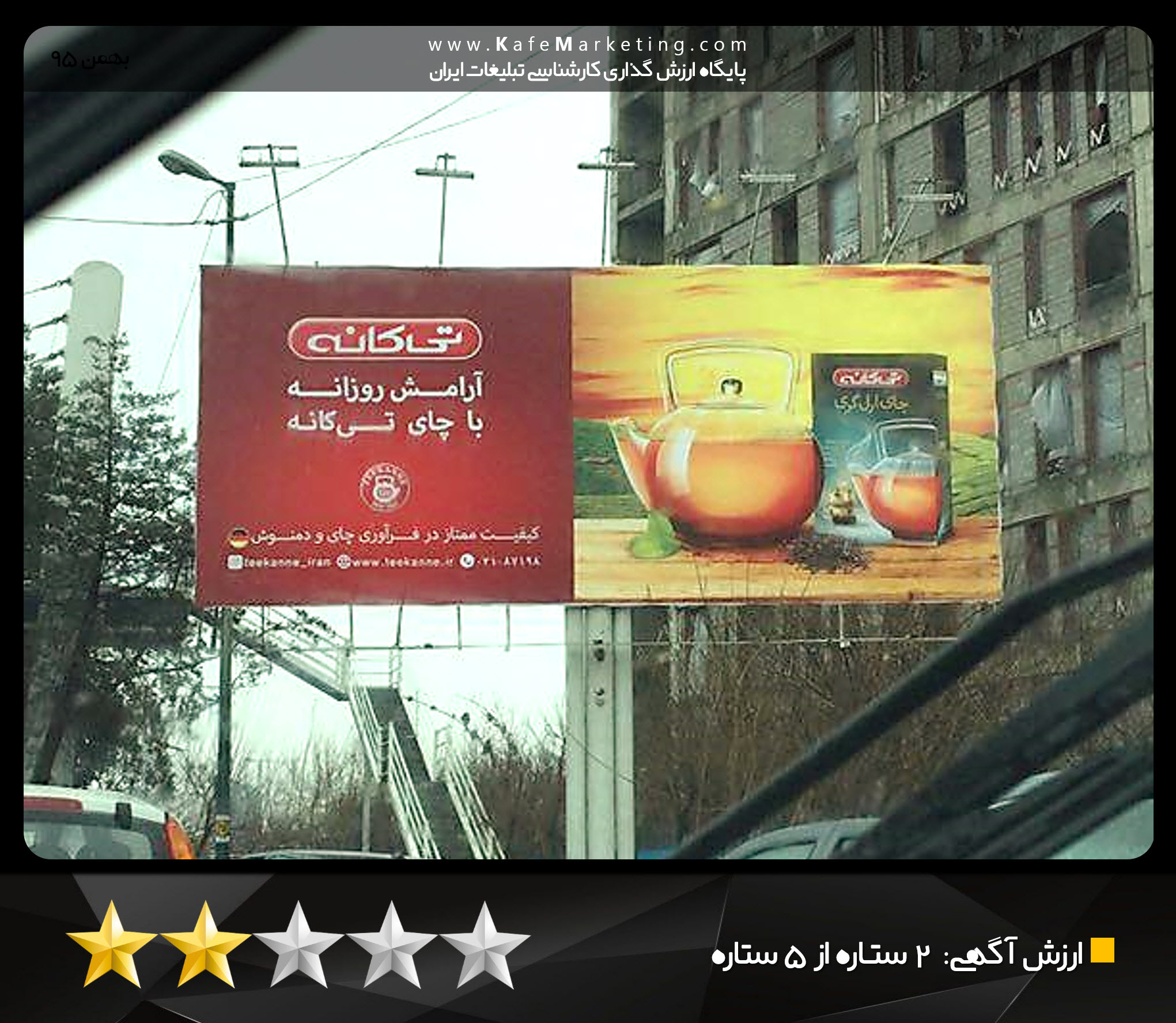 همراهان کافه بازاریابی، همان طور که در کانال تلگرام کافه بازاریابی شاهد بودید در کافه بازاریابی رتبه بندی و ارزش گذاری آگهی های ایران “در فاز اول آگهی های محیطی” شروع شد و انعکاس خوبی هم نزد اهالی فن و متخصصان داشت. پیامهای متعدد شما بعد از شروع این حرکت ما را بر آن داشت تا از نحوه ارزش گذاری گزارشی ارایه دهیم که پیش از این در سایت خواندید (اینجا) با پایان بهمن ماه می توانید نتیجه ارزش گذاری ویژه بهمن ماه را یکجا ببینید. برای دیدن لحظه به لحظه ارزیابی ها نیز با کانال ما همراه باشید. این ماه ماه خوبی نبود و کافه بازاریابی هیچ اگهی را به عنوان صدر نشین معرفی نمی کند. این ماه ماه اگهی های یک و دو ستاره بود.
