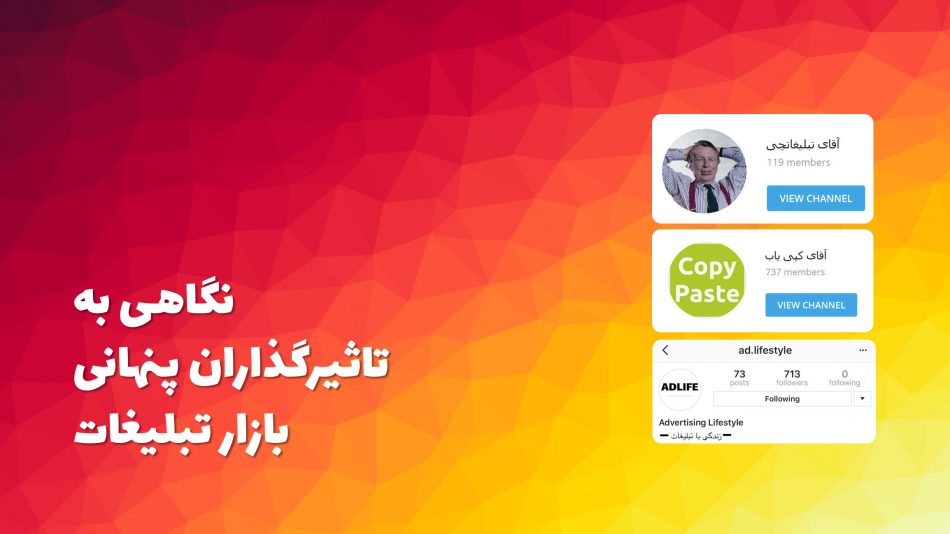 اما شکل جدیدی که می خواهم درباره آن صحبت کنم “اثرگذاری” بر مارکت تبلیغات بدون هیچ نام و نشانی است. امروز بازار تبلیغات که البته بیشتر تاکیدم روی بدنه اجرایی آن است با تاثیرگذاران پنهانی سروکار دارد که خویشتن واقعی خود را به مخاطب معرفی نمی کند ولی حرفهای زیادی برای گفتن دارد. بگذارید اول یک معرفی کوتاه داشته باشم از این شخصیتهای جذاب این روزهای تبلیغات.