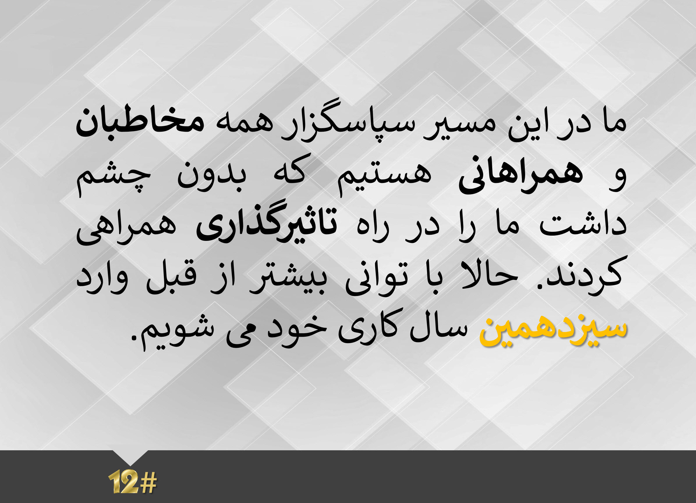 بسیار خرسندم که تقریبا ۵ سال پیش با این مجموعه آشنا شدم و کار کردم و بسیار متاسفم که حضورم کمرنگ کمرنگ شد،ممنون از شما بزرگواران که نام من رو هم به عنوان اعضای شورا نام بردید با اینکه عملا هیچ فعالیتی در سال های اخیر انجام ندادم