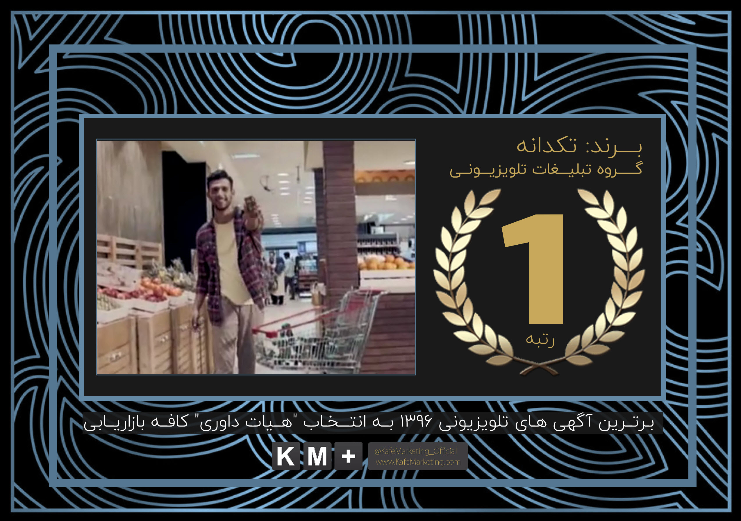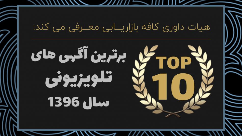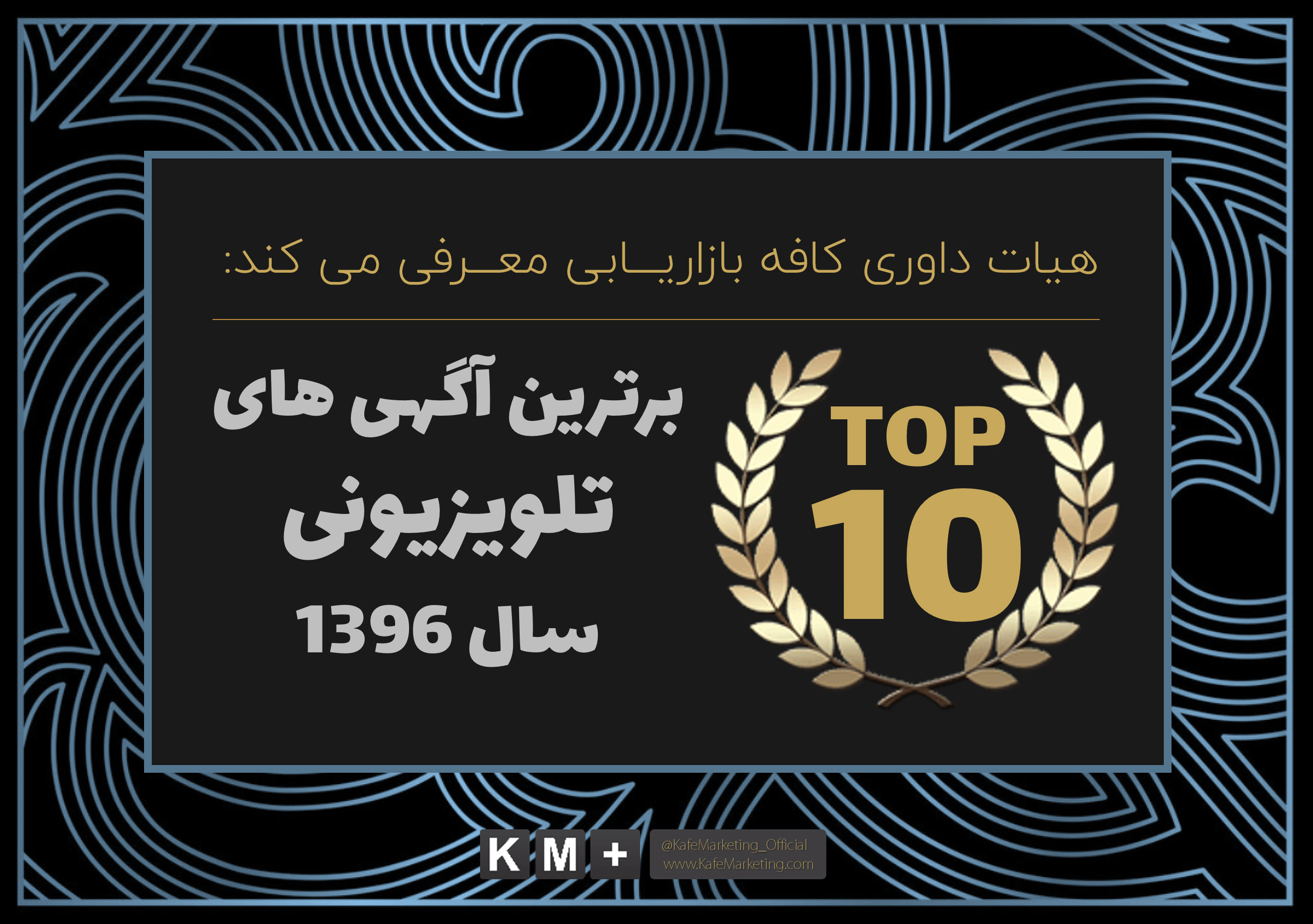 همراهان خوب کافه بازاریابی، امسال و برای سومین سال پیاپی با انتخاب برترین آگهی های تلویزیونی سال ۹۶ با شما همراه هستیم. برندگان این بخش از میان ۲۵ اثر برگزیده شده اند. در این مسیر دوستان زیادی به ما کمک کرده اند که جا دارد از تک تکشان تشکر کنیم. بدون توضیح اضافه برویم سراغ نتایج.