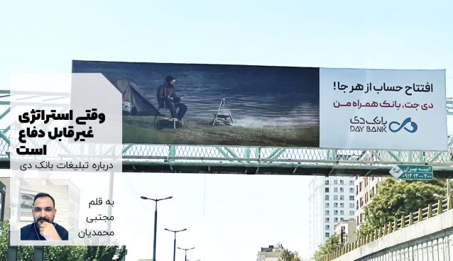 از جمله آگهی هایی که هیچ اعتقادی به بینش و دیدگاه مخاطب ندارد! آگهی موبایل بانک دی گویی از دل آگهی های دهه هشتاد آمده است. آن زمان که “از هرجا باز کردن حساب” مساله مخاطب بود. به نظر شما واقعا دغدغه مردم این است که از “هرجا” بتوانند حساب […]