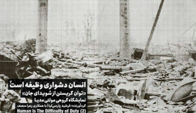 انسان دشواری وظیفه است(۲) توان گریستن از سویدای جان نمایشگاه گروهی مولتی مدیا گردآورنده: فرشید پارسی کیا آثاری از محمد اردلانی. اونیش امین الهی . زهره خلیفه. زُروان. اشکان قازانچایی. محبوبه میرزایی. نزار موسوی نیا. ساسان مویدی. هانی نجم. رسول یونان با شعری از علیرضا آدینه، پرفورمنس آرت: الهام زارع […]
