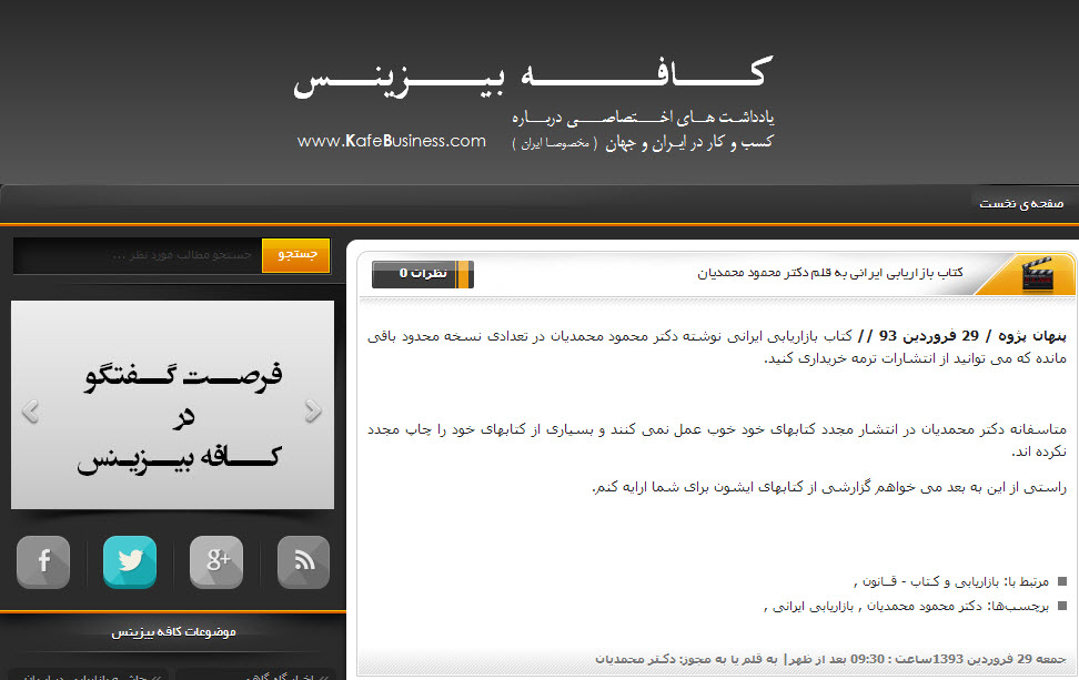 حالا افتتاح “کافه بیزینس” // ما از این به بعد در هر دو “کافه” برای شما می نویسیم