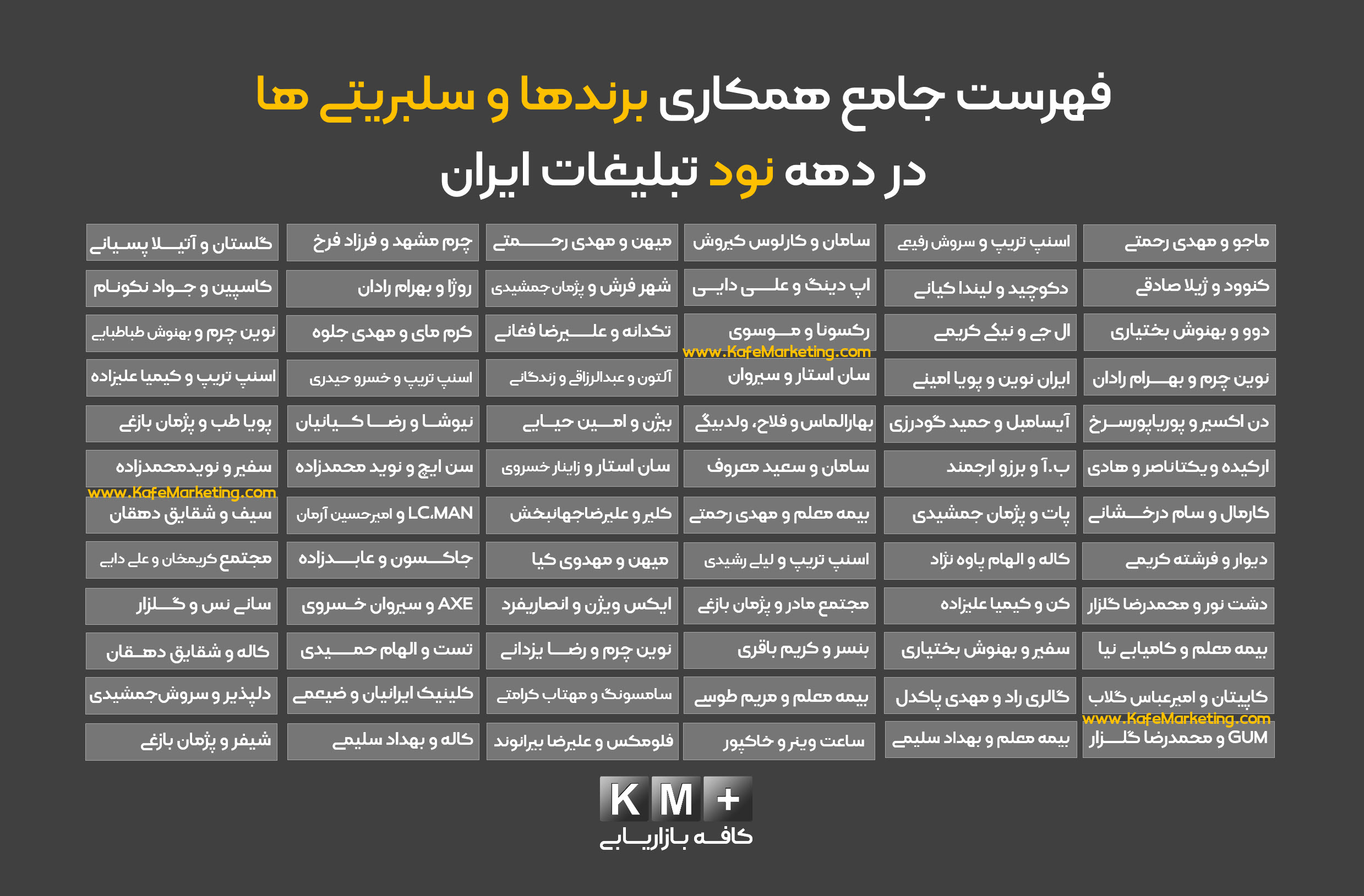 نتیجه نهایی انتخاب مردمی جذابترین همکاری برندها با سلبریتها در دهه نودِ تبلیغات ایران
