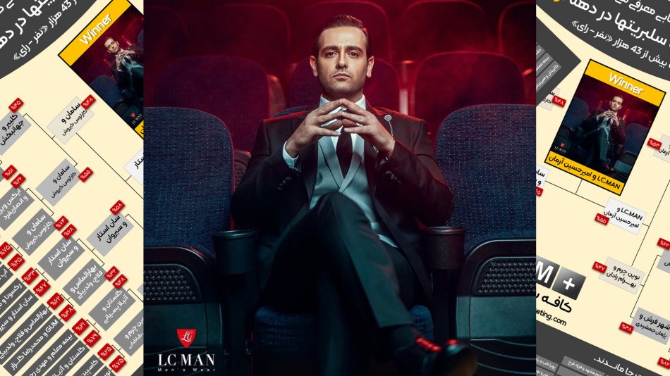 دوستان و همراهان عزیز کافه بازاریابی پس از یک رقابت یک ماهه بالاخره منتخب مردمی جذابترین همکاری برندها با سلبریتها در دهه نودِ تبلیغات ایران مشخص شد. امیرحسین آرمان و ال سی من نهایتا از سوی مخاطبان کافه بازاریابی به عنوان جذابترین همکاری برندها و سلبریتی ها انتخاب شد. در این رقابت ابتدا ۷۲ همکاری شناسیایی شد که ۳۲ همکاری از سوی هیات انتخاب جهت بخش رقابت انتخاب شدند. نکته مهم این که همکاری هایی که صرفا به فضای مجازی خلاصه شده در این رقابت مدنظر نبوده است. همچنین در ابتدای هر نظرسنجی به مخاطب اطلاع رسانی در مورد ملاک انتخابها صورت گرفت ترکیب همخوان و جذابیت همکاری به عنوان دو معیار اصلی برای رای گیری تعیین شده بود.