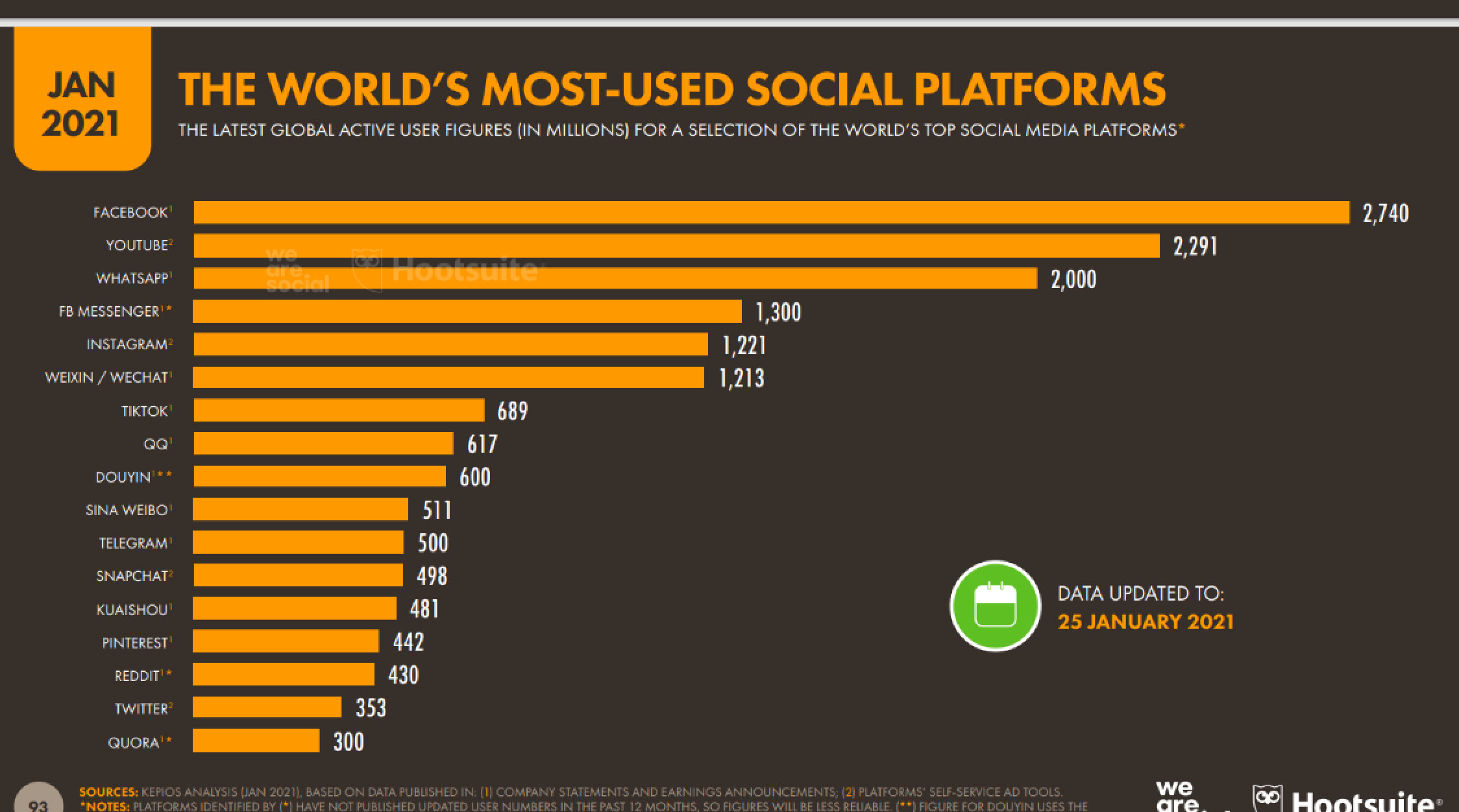 پرطرفدارترین  شبکه های اجتماعی در سال ۲۰۲۱ به ترتیب می توان به شرح ذیل اعلام نمود.