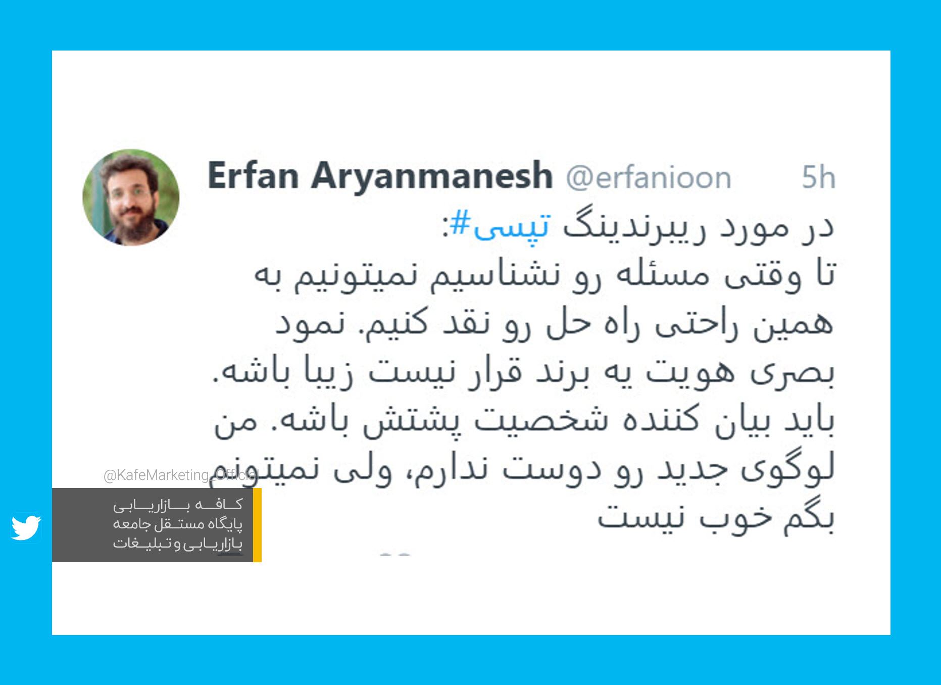 لوگوی تپ سی تغییر کرد خبرنگار کافه / بهمن ۵, ۱۳۹۸ / 0 نظر تپ سی از لوگوی جدید خود رونمایی کرد. در این بخش پذیرای دیدگاه شما درباره این تغییر هستیم. دیدگاههای شما در مقام کارشناس و یا مخاطب برند، قطعا نکات برجسته ای را برای همه ما خواهد داشت. کپی کردن لینک مطلب
